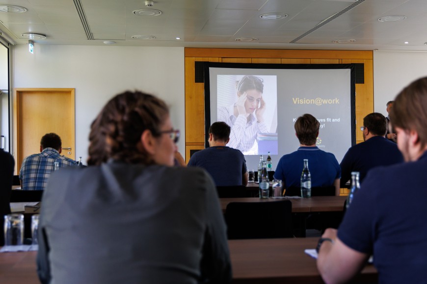 On day two, collaborative sessions took center stage, enabling attendees to delve deeper into their research endeavors, exchange ideas, and forge meaningful connections. After lunch, the retreat shifted gears with an eye-exercise workshop led by Sven Munderloh, who reminded participants that our eyes practically run a marathon in front of screens during a typical working day. Participants first learned the theoretical basics for understanding the visual process and perception. They were then given a series of exercises to master individual eye functions and tips on how to incorporate eye health exercises into everyday life. The subsequent eye exercise course provided an opportunity to test each individual's eye function and apply the theory in a fun and engaging way.